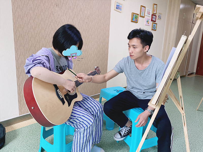 我院是省内较早开展特色工娱治疗的专业机构之一,组建了一支由四川大学、四川师范大学博士、硕士研究生领衔的工娱治疗团队。针对开展工娱项目,包括:在校常规课程辅导、绘画音乐舞蹈训练、瑜伽武术运动训练、花艺陶艺棋艺训练、生活社交技能训练等。并定期联合公益组织开展集体画展、文娱汇演、才艺展示等丰富多彩的活动;其中针对性学科辅导帮助多位患者在2020年高考取得600+高分。